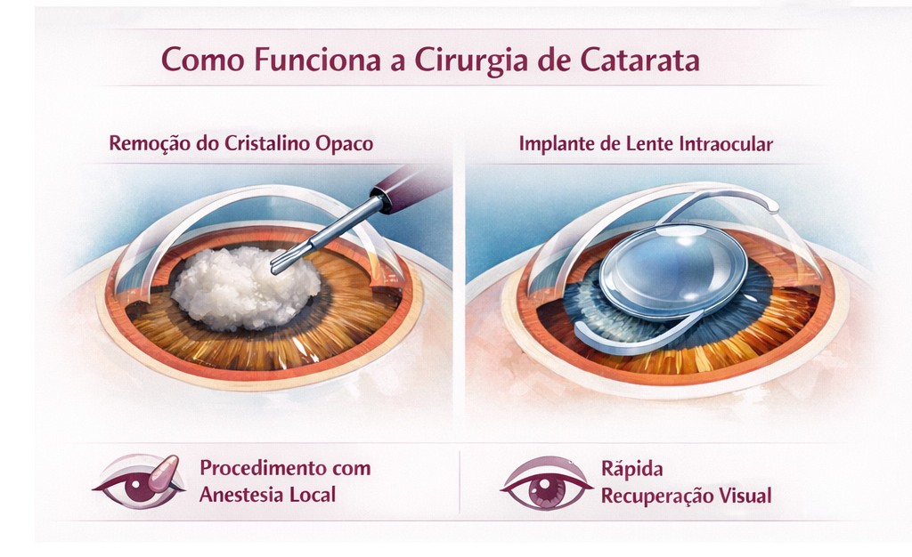 É importante destacar que não há colírio, medicamento ou exercício visual capaz de reverter a catarata. Quando ela interfere de forma significativa na qualidade da visão, a cirurgia é o tratamento indicado.