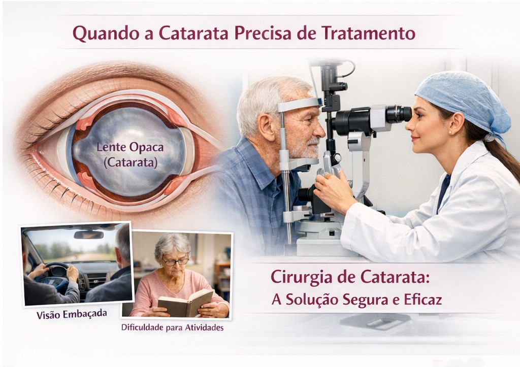 No início, algumas pessoas conseguem manter boa funcionalidade com ajustes de iluminação, atualização dos óculos e acompanhamento regular. Porém, quando a catarata começa a comprometer atividades importantes, o tratamento cirúrgico passa a ser a melhor solução.